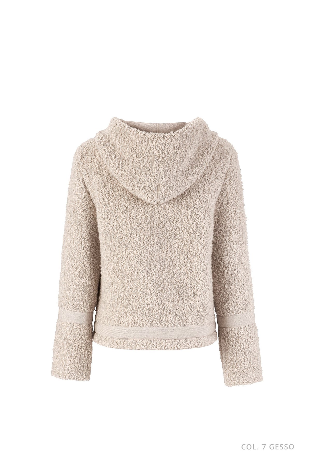 Wrap yourself in warmth and style with this bouclé jacket, designed to combine sporty ease with refined elegance. The soft bouclé texture gives this winter piece a cozy, enveloping feel, while the light tone and delicate chain detail add a touch of romantic charm. Expertly crafted by D.Exterior, this jacket embodies impeccable tailoring and stands out as a must-have for the season.