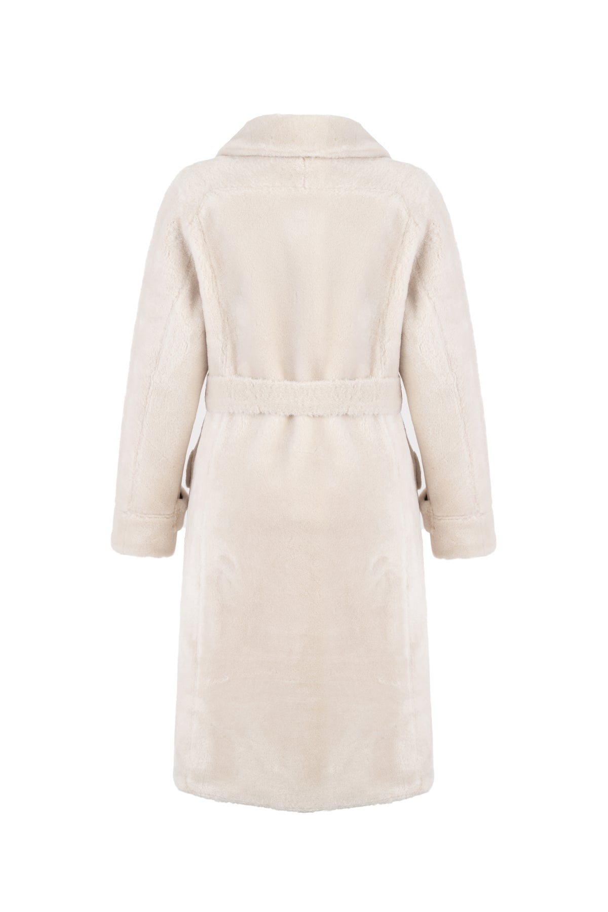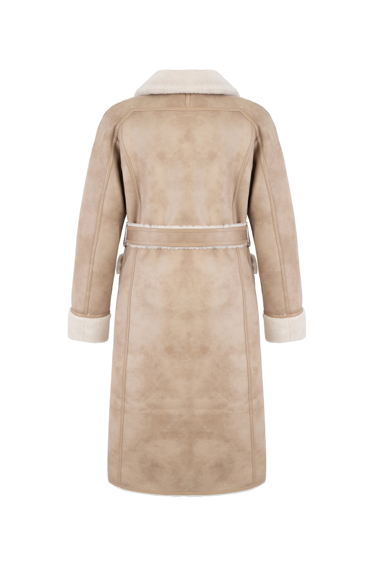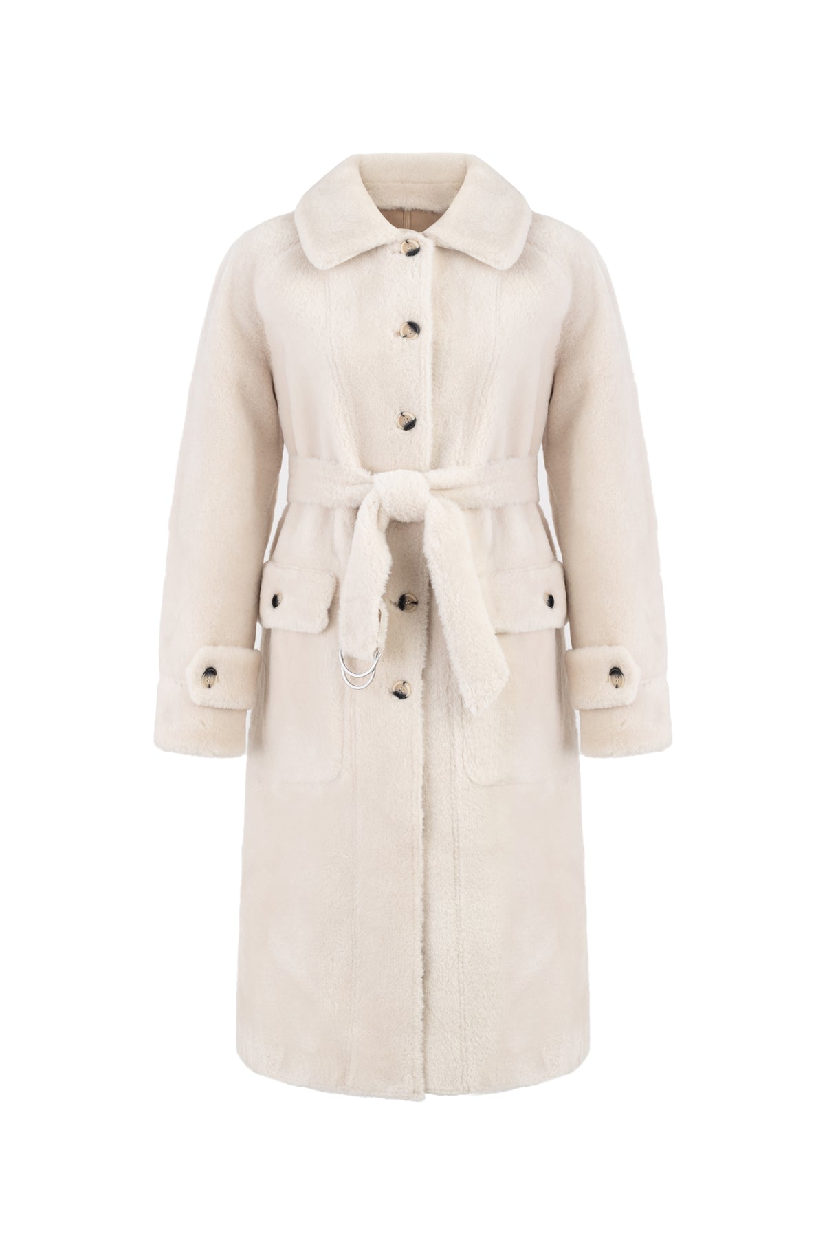 The silhouette is elegant and straight, with a button-front closure and appliqué patch pockets that add both style and practicality. In its natural tone, this coat feels beautifully understated, making it the perfect piece to complement every outfit.