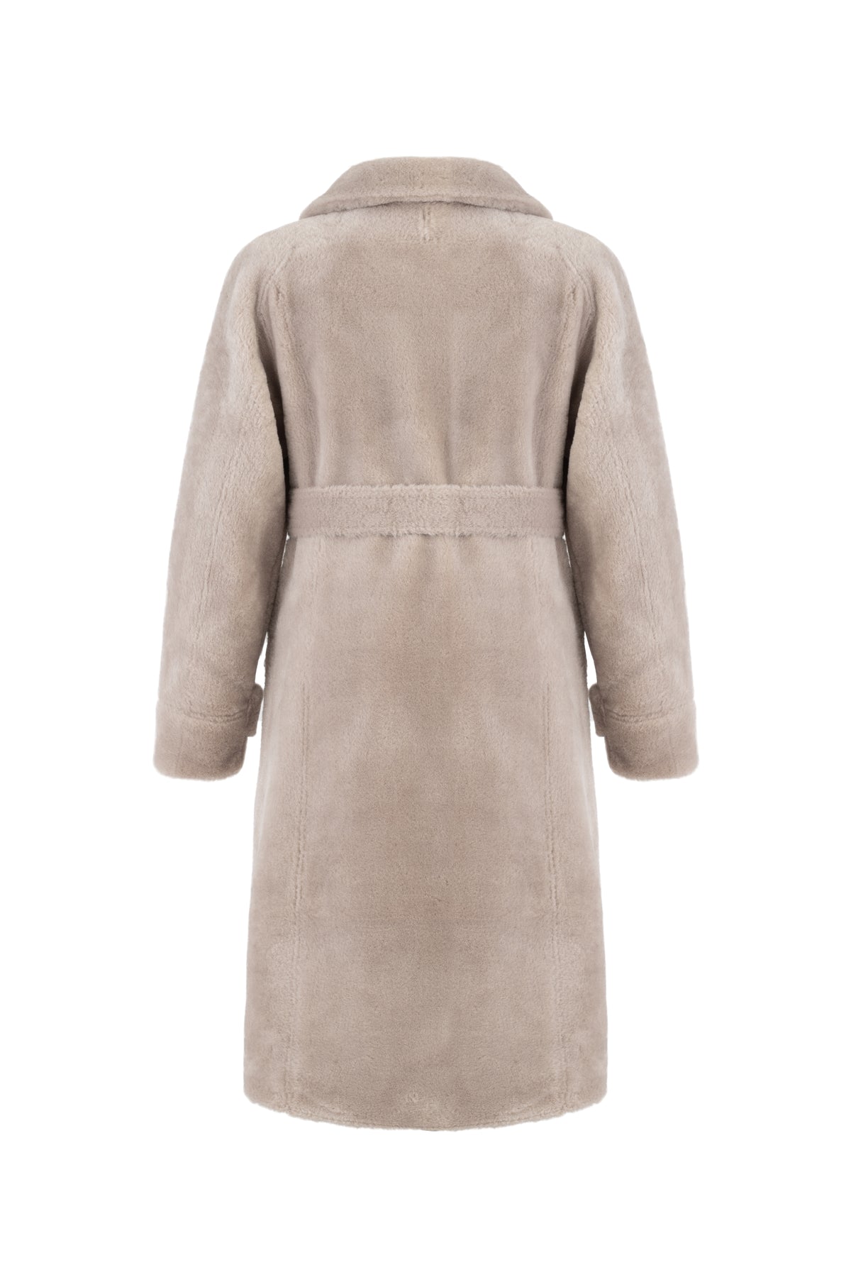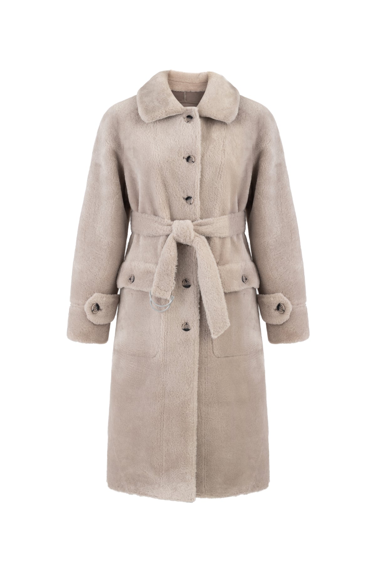 The silhouette is elegant and straight, with a button-front closure and appliqué patch pockets that add both style and practicality. In its natural tone, this coat feels beautifully understated, making it the perfect piece to complement every outfit.