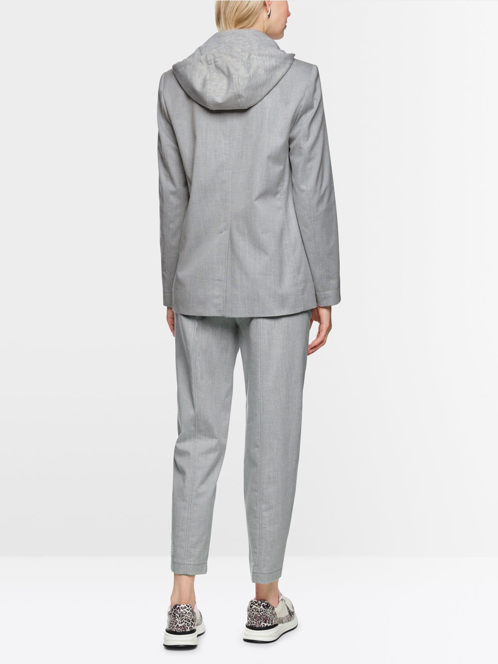 This blazer impresses with its sporty, elegant look, as it combines both styles. The classic elements are the lapel collar, the single-breasted buttoning and the side pockets. In addition, a jersey insert with zip, hood and drawstring adds a sporty touch. This blazer is lined and has a nice fit thanks to its material mix.