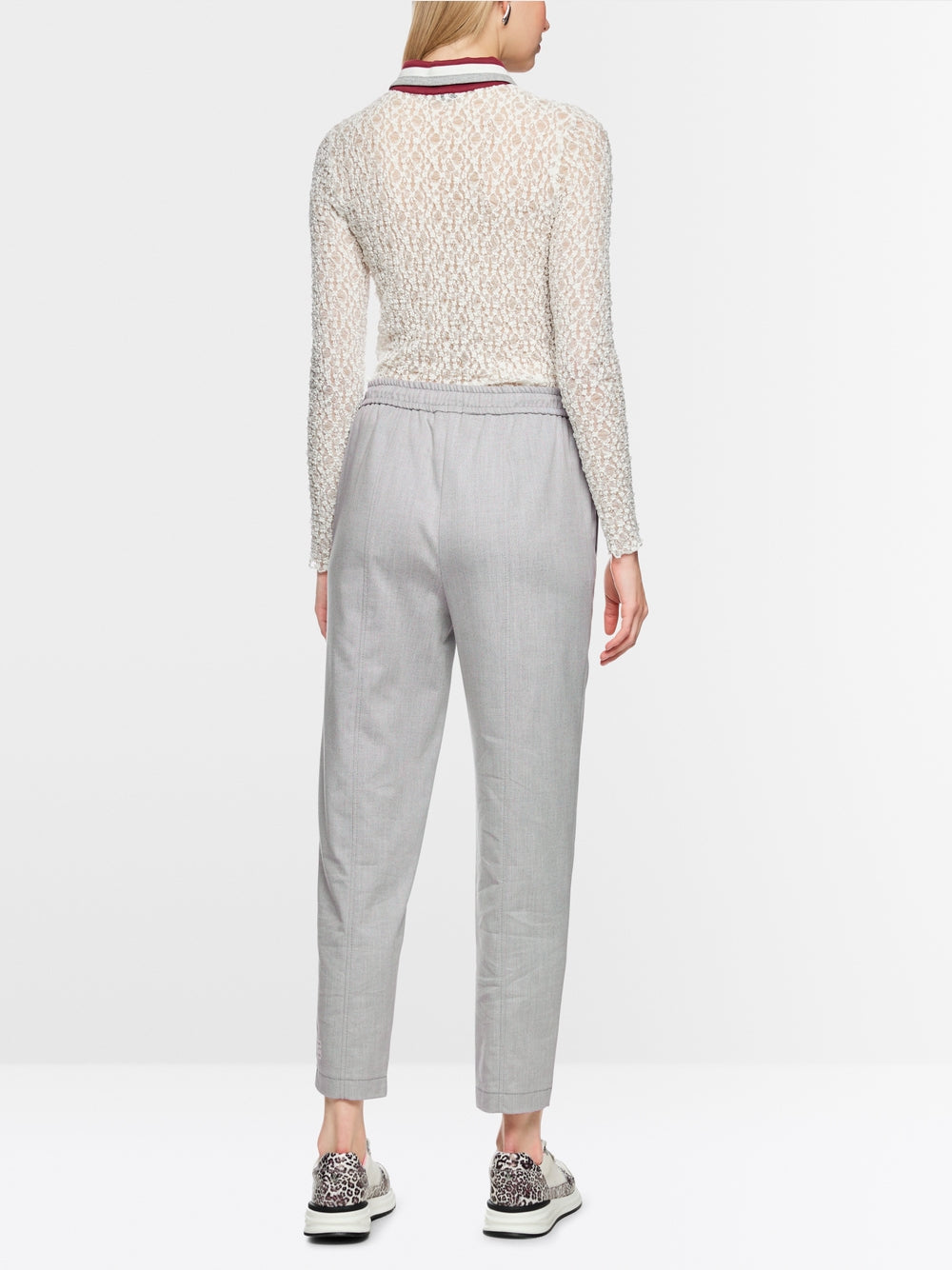 The RHODOS fabric trousers have a relaxed cut. The leg length is slightly cropped and the fabric has a pleasant stability. This creates a sporty, casual look. The waistband has an elasticated waist and drawstring, ensuring optimal comfort. There are pockets on the sides. Decorative seams complete the look.
