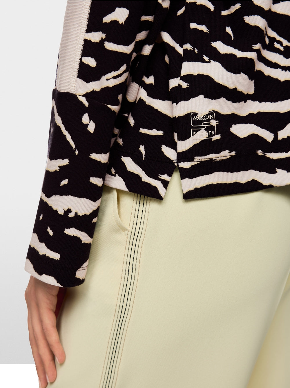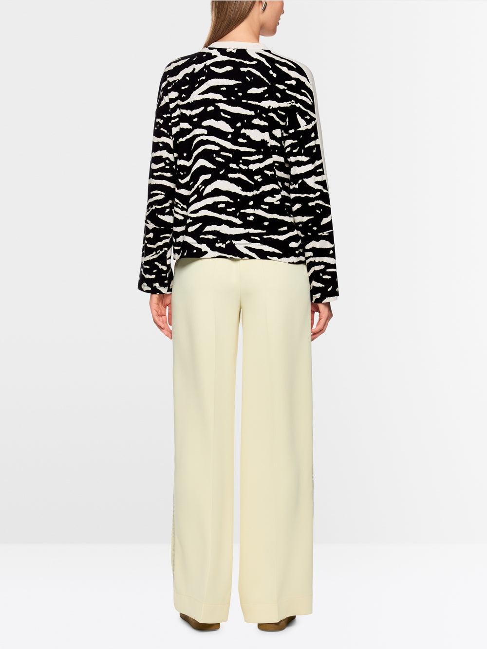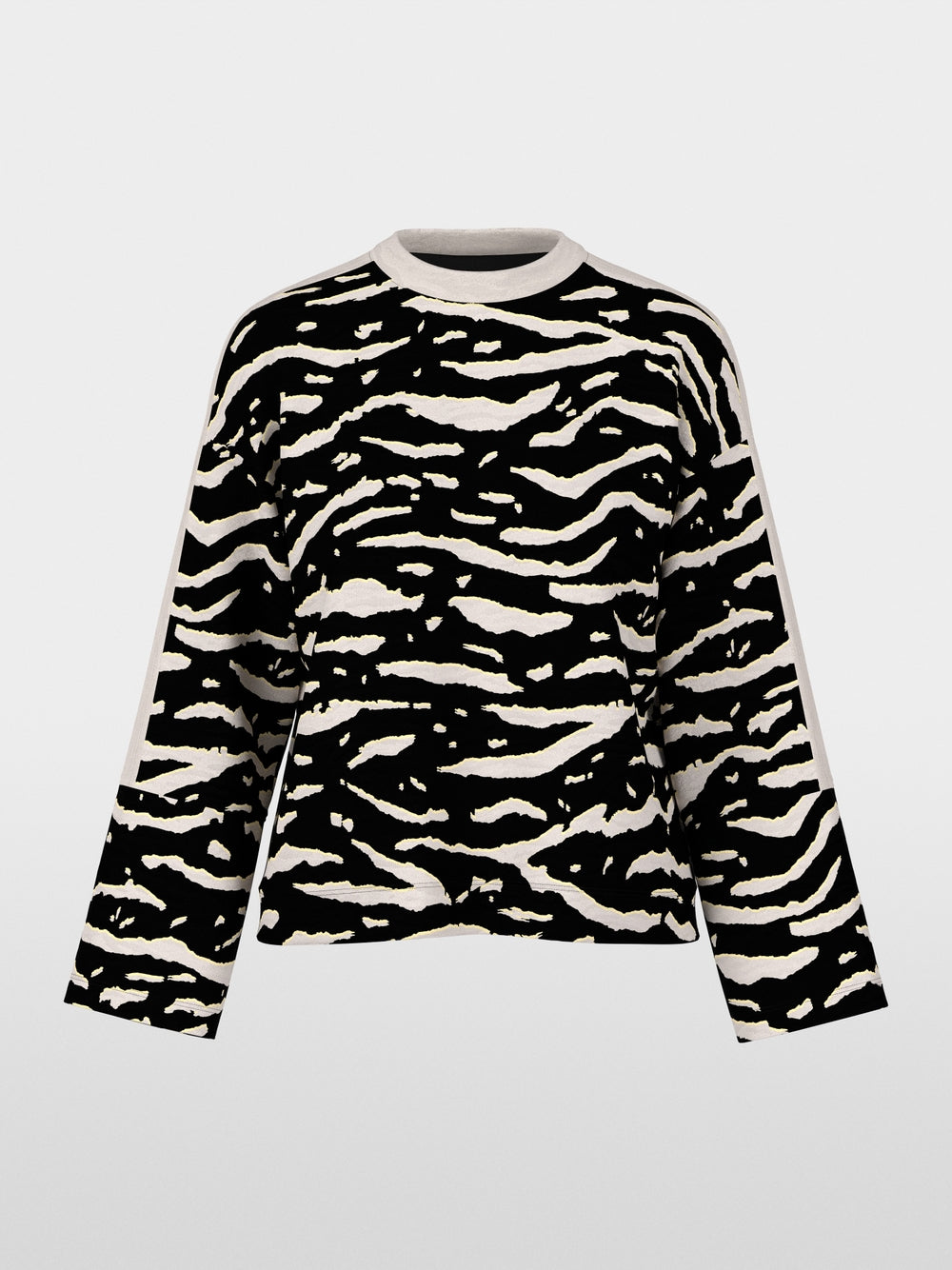 This fine ribbed knit shirt stands out with its trendy animal print. It has a loose fit and slightly wider sleeves. The soft material blend of cotton and a small amount of elastane ensure a comfortable fit.